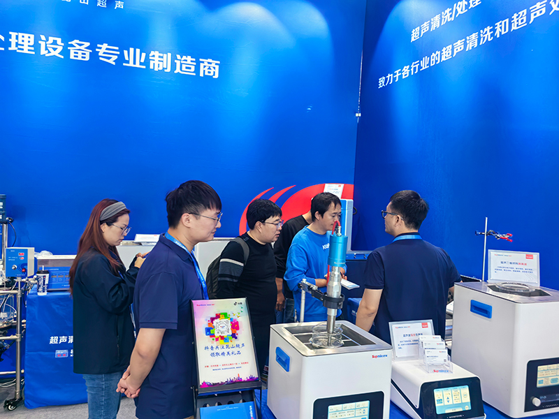本屆公司展品主要有各種功能、適用多個領域的超聲波清洗機及超聲波處理器,備受關注的主要有兆聲波清洗機、云智聯超聲波清洗機、超聲反應釜、二維材料剝離器、超聲綜合處理器等,現場頗為熱鬧。為本屆展會,本公司還專門展示新品“超聲水浴振蕩器”,并聽取廣大專業觀眾的改進意見,期待該新品的正式上線!
